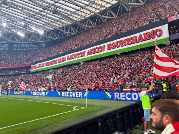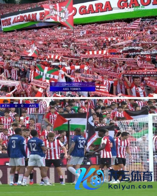 有西班牙记者晒出本场比赛毕尔巴鄂的球迷看台,不错见到好多因循巴勒斯坦的讨好旌旗和横幅。