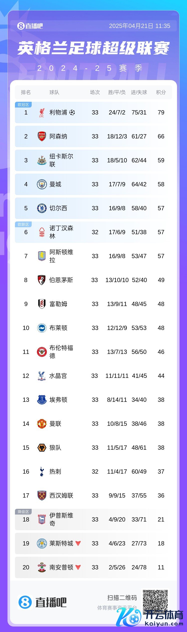 04月21日讯 英超第33轮阿森纳4-0打败伊普斯维奇,现联赛还剩5轮过期榜首利物浦13分卓绝第三纽卡7分。