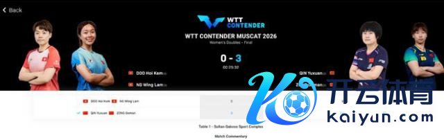 北京技术 1 月 24 日,WTT 马斯喀特惯例挑战赛女双决赛,覃予萱 / 纵歌曼 3-0 横扫杜凯琹 / 吴咏琳拿到冠军,三局比分:【14-12,11-8,11-1】。这场比赛仅第一局略有海浪,后头的两局齐在覃予萱 / 纵歌曼的掌控当中,这场决赛国乒组合得到很马虎。 覃予萱 / 纵歌曼拿下这个女双冠军后并莫得太雀跃,全程两东谈主齐知道的相配淡定,似乎莫得第一局涉险过关时那种雀跃劲儿。 第一局十足是这场比赛的要津,开场两队死战到 4-4,覃予萱 / 纵歌曼连拿 3 分后 7-4 反超,但这种上