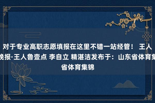 对于专业高职志愿填报在这里不错一站经管! 王人鲁晚报·王人鲁壹点 李自立 精湛洁发布于:山东省体育集锦