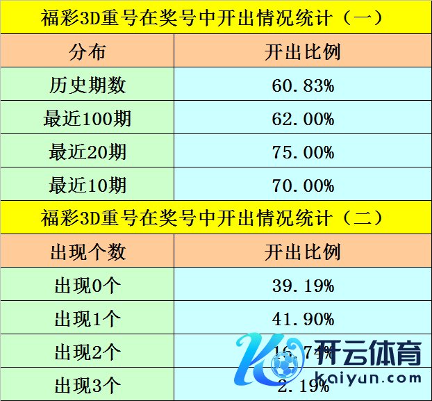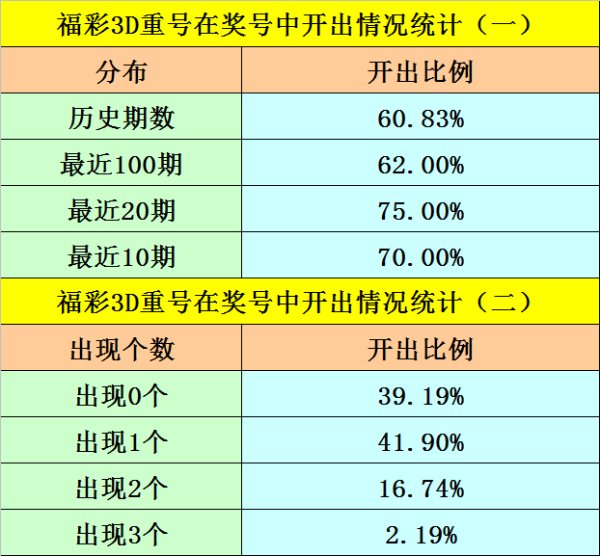 最近100期开奖中,含有重号的奖号有62期,最近20期含有重号的奖号有15期,最近10期含有重号的奖号有7期。本期摒弃重号。