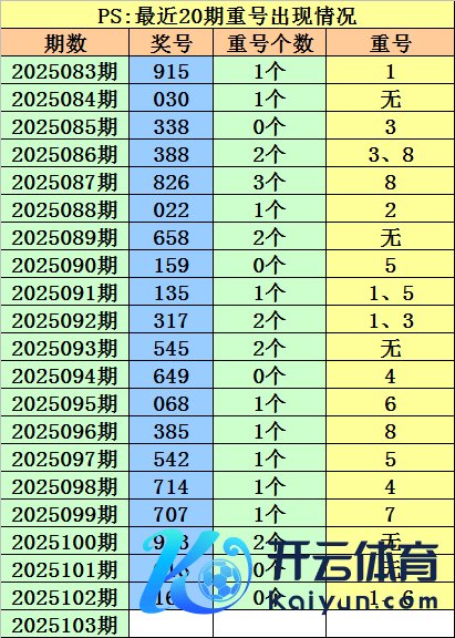开奖总结:福彩3D第2025102期开出奖号:161。 最近100期开奖中,含有重号的奖号有62期,最近20期含有重号的奖号有15期,最近10期含有重号的奖号有7期。本期摒弃重号。 跨度分析:3D上期跨度为5,跨度近期波动较小,一般出咫尺3-7之间,本期看好跨度出咫尺5-9之间,最大跨度参考6789,参考跨度9。 胆码推选:3D近100期开奖中,组三和豹子共出现27期,半顺温煦子号码开出32期,杂六号码开出41期。近50期奖号中,组三和豹子出现13期,半顺温煦子共开出16次,杂六组开出21次。