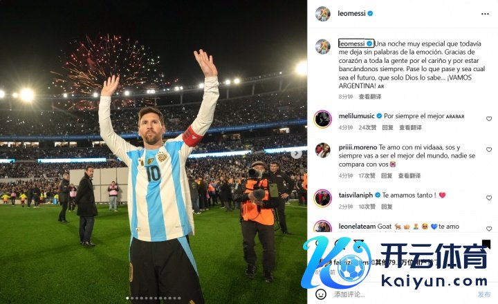 09月05日讯 世初赛南好意思区第17轮,阿根廷3-0完胜委内瑞拉,梅西梅开二度。赛后梅西发布社媒,缅念念了我方在阿根廷国度队的临了一场原土主场比赛。
