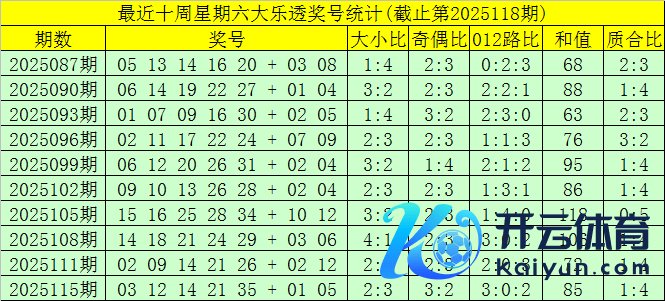 后鉴别析:最近10周星期六一大一小开出2次,全怒放出2次,全小开出6次;全奇开出2次,全偶开出4次,一奇一偶开出4次,本期后区介怀两码08+09。