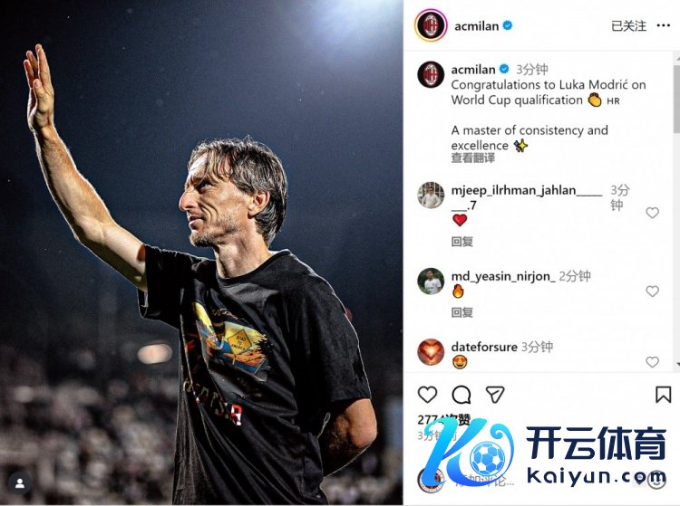 米兰官方社媒晒出莫德里奇的相片体育录像/图片,配文:“道喜莫德里奇晋级寰宇杯!一位相识与异常并存的群众。”