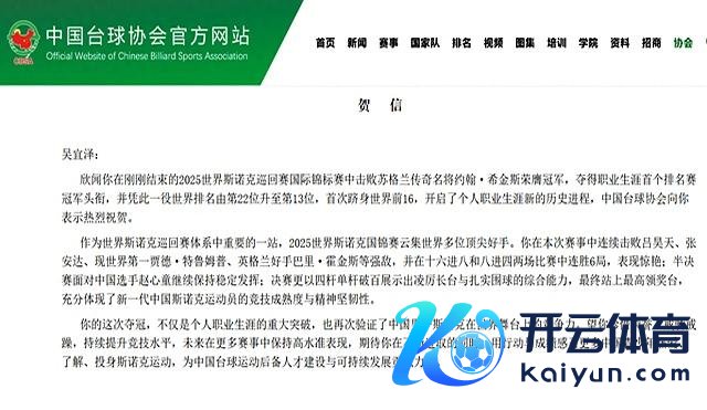 贺信里提到的刻苦考察、连胜12局、4杆破百,才是确凿决定服从的字据链。