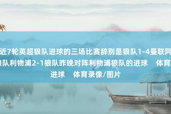 体育录像/图片 12月28日讯 狼队在近7场英超比赛中只进了3球,辞别是对阵BIG6三支球队——曼联、阿森纳、利物浦进的,对其他的英超戎行王人莫得进球,号称只进强队的球。 近7轮英超狼队进球的三场比赛辞别是 狼队1-4曼联 阿森纳2-1狼队 利物浦2-1狼队 昨晚对阵利物浦狼队的进球体育录像/图片