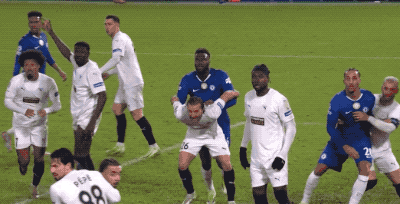第17分钟,内托45度传中,切尔西门前双鬼拍门,恩佐头球破门,但进球被秒吹,裁判认定恩佐推东谈主犯规在先。