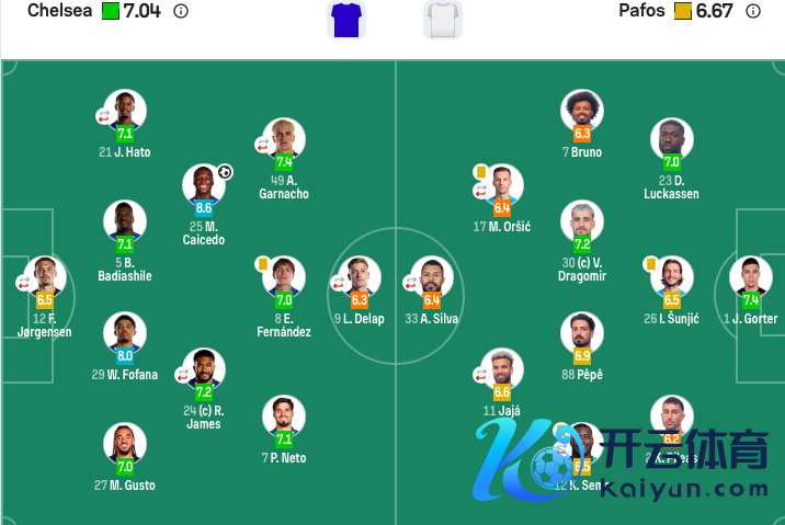 第78分钟,凯塞多接到对方10号的乌龙助攻,头球破门。最终,切尔西1-0征服帕福斯,7轮战罢4胜1平2负,值得防备的是,切尔西全队总身价高达11.7亿欧元,帕福斯只好3000万。