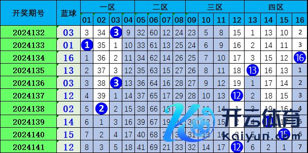 上期蓝球开出号码12,近十期开出蓝球在一区4个,莫得出当今二区,三区2个,四区4个,二区走势最冷,一、四区走势最热,本期臆想蓝球会出当今二区,重心关爱号码:07。