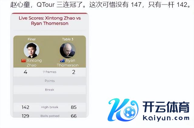 刻下赵心童也曾完成了巡回赛24连胜,打出了Q tour史上唯二的两杆147!