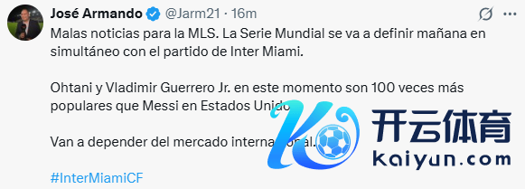 体育赛事直播 虎扑11月01日讯MLB宇宙大赛第六场,洛杉矶说念奇3-1打败洛杉矶蓝鸟,两边大比分战成3-3,翌日将迎来终极冠军决战。迈阿密跟队JoseArmando示意,这件事关于好意思职联来说是坏音信,因为翌日有迈阿密海外的比赛。 该记者写说念: 好意思国办事足球大定约迎来坏音信,棒球宇宙大赛决赛将于明日与迈阿密海外的比赛同时献技。 如今在好意思国,大谷翔平与弗拉基米尔-格雷罗二世的东说念主气,是梅西的100倍。 MLS将不得不依赖海外商场体育赛事直播。