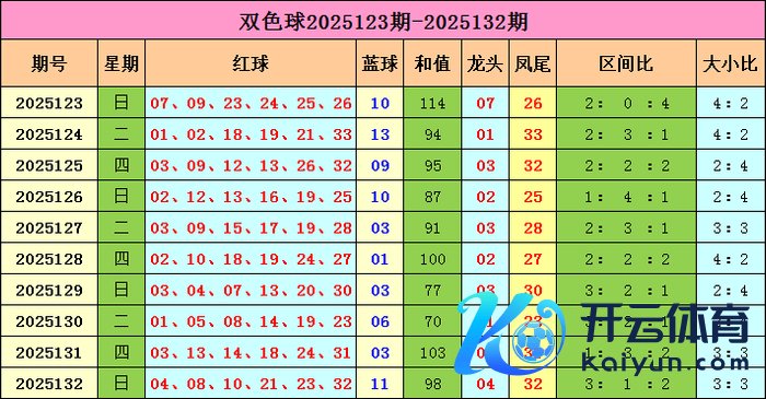 红三区【23-33】上期该区开出2个红球23、32,近10期出号17走势相对较冷;近50期该区开出94个,低于平均值;本期该区展望开出2个25、32。