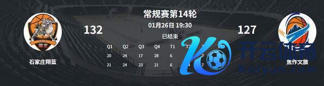 在 1 月 26 日晚上进行的 NBL 成例赛的一场较量中,石家庄翔蓝镇守主场,与 NBL 新军焦作文旅男篮献艺了一场死战,两队打了 3 个小时,通过 4 个加时苦战,最终,石家庄队以 132-127 胜出。单场四个加时赛也创下了 NBL 联赛的历史记载。而单场 4 个加时的局面,连 CBA 王人莫得这方式。而此役亦然广东旧将威姆斯的首秀,他爆砍 30 分 15 篮板,却难挽败局。