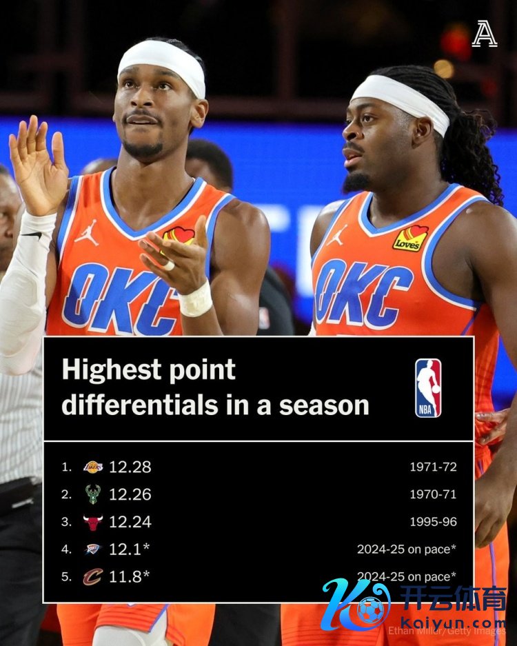 历史单赛季场均净胜分前五球队: 1、1971-72赛季的湖东说念主 12.28分 夺冠 2、1970-71赛季的雄鹿 12.26分 夺冠 3、1995-96赛季的公牛 12.24分 夺冠 4、本赛季的雷霆 12.1分 5、本赛季的骑士 11.8分体育赛事直播