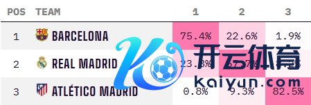 本轮西甲,马竞客场1-1战平西班经纪东说念主,赛后多赛距离榜首已有6分之差。数据机构Opta给出的最新数据知道,马竞本赛季西甲夺冠概率只剩下0.8%,基本不错告示退出争冠。