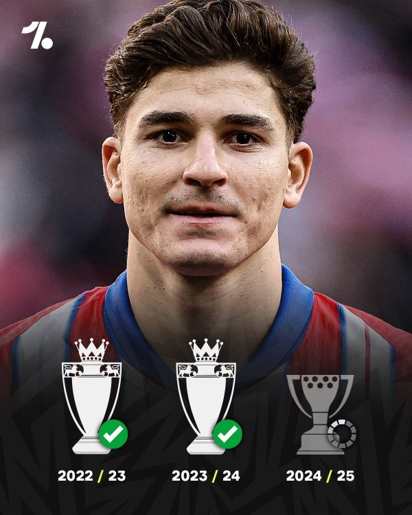 在本赛季之前,阿尔瓦雷斯仍是连络三个赛季斩获联赛冠军。2021赛季,阿尔瓦雷斯随河床夺得阿根廷做事联赛冠军,2022-23和2023-24赛季,阿尔瓦雷斯则随曼城夺得两座英超冠军。