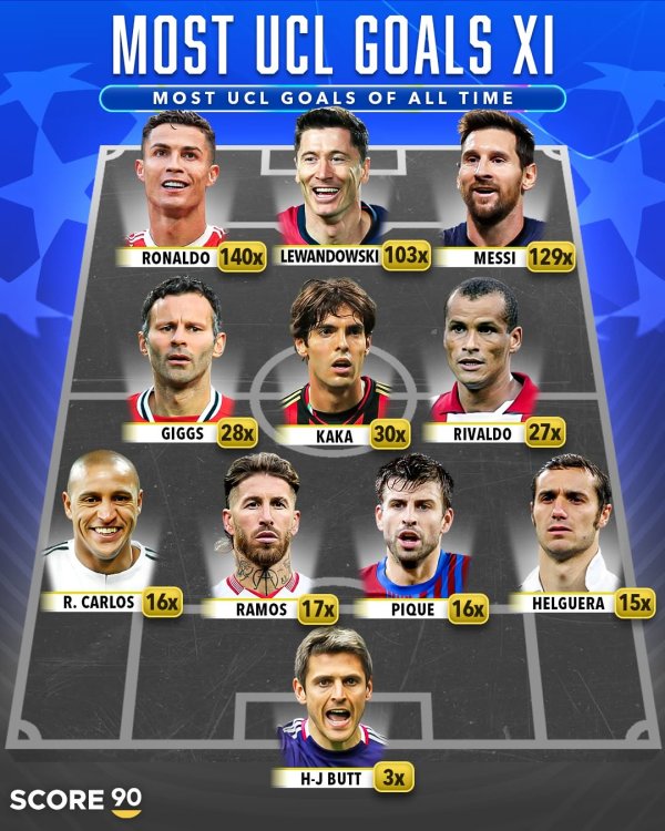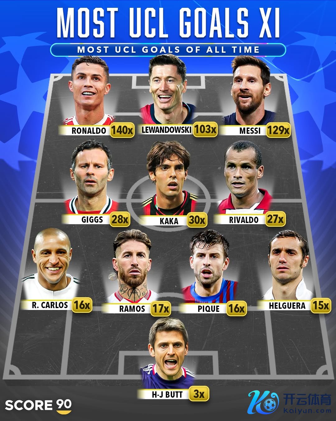 外媒欧冠列位置进球最多11东谈主↓ 门将:布特 后卫:卡洛斯、拉莫斯、皮克、伊万-埃尔格拉 中场:吉格斯、卡卡、里瓦尔多 先锋:C罗、莱万、梅西体育赛事直播