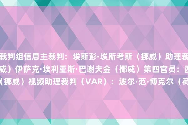 裁判组信息主裁判:埃斯彭·埃斯考斯(挪威)助理裁判:扬·埃里克·恩根(挪威)伊萨克·埃利亚斯·巴谢夫金(挪威)第四官员:西古德·克林斯塔德(挪威)视频助理裁判(VAR):波尔·范·博克尔(荷兰)VAR助理:布拉姆·范·德里舍(比利时) 体育赛事直播